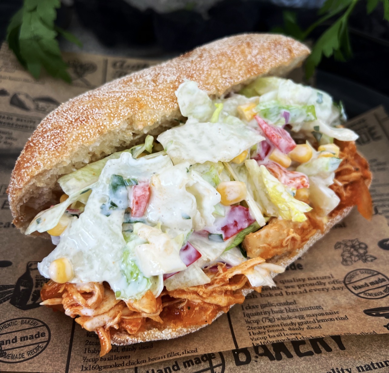 Heute habe ich saftiges Pulled-Chicken im ofenfrischen Ciabattabrot – außen knusprig, innen herrlich weich. Zart gegartes Hähnchenfleisch wird langsam gezogen, sorgfältig gewürzt und mit einem cremigen, hausgemachten Dressing verfeinert. Frischer Salat, knackiges Gemüse und typische amerikanische Aromen machen dieses Sandwich zu einem Highlight für...