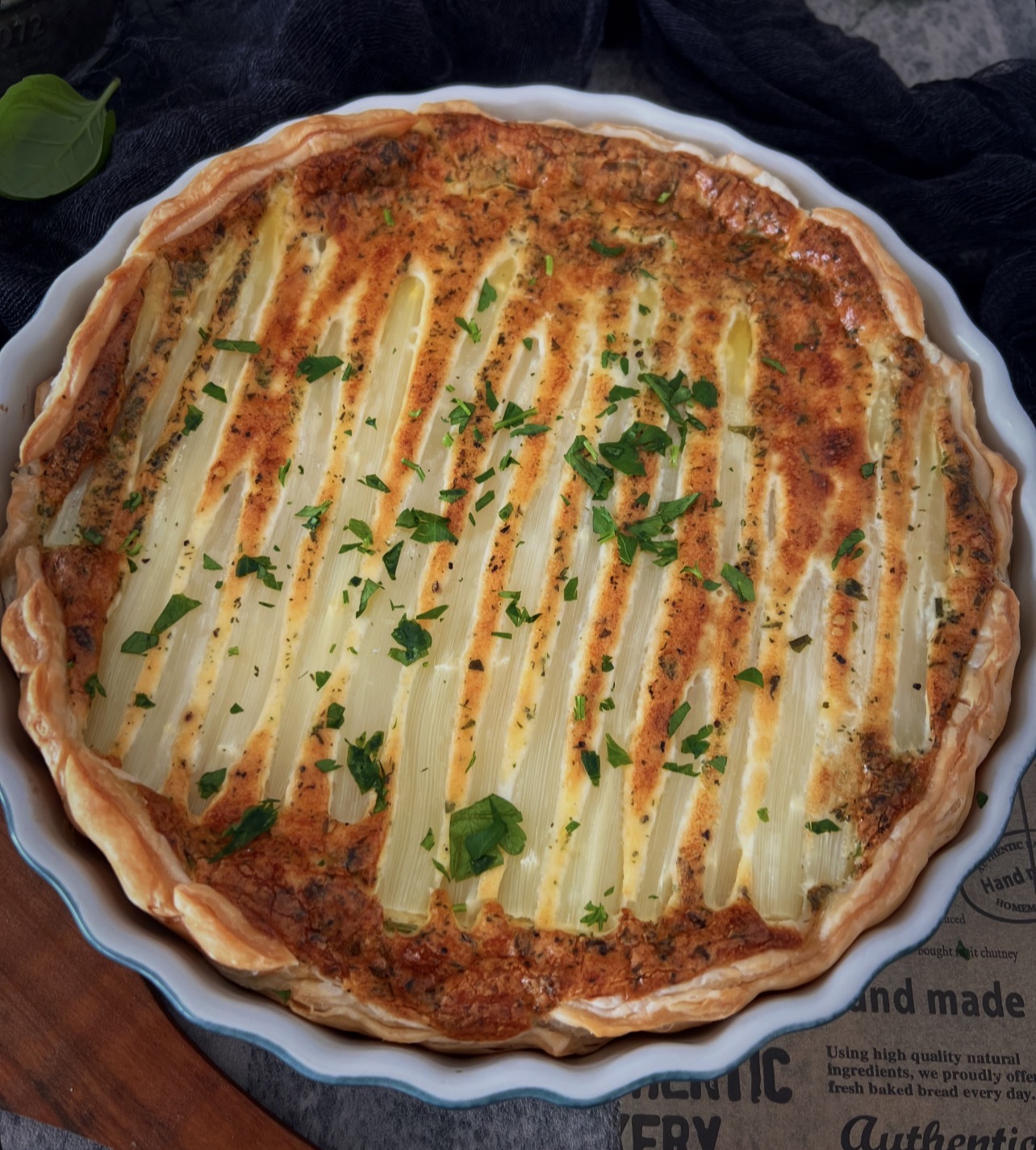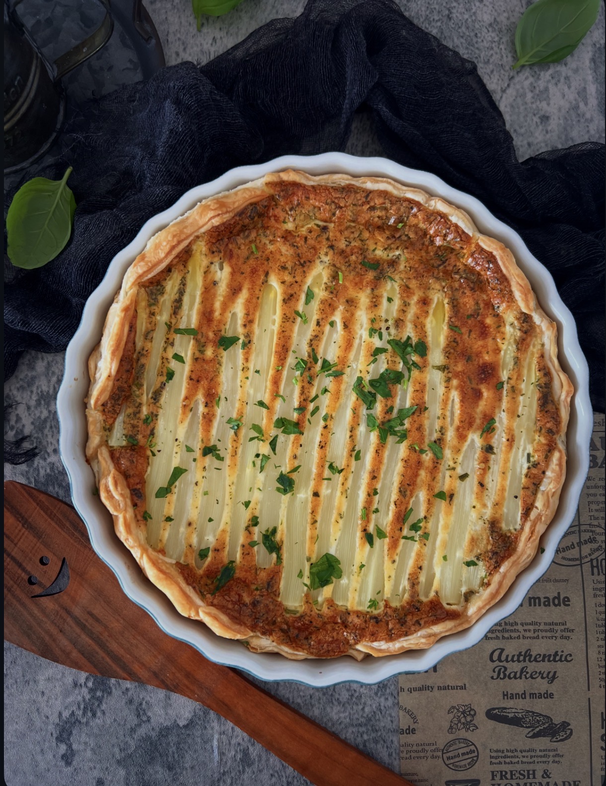 Diese einfache Spargel-Quiche ist das perfekte Rezept für die Spargelsaison. Frischer weißer Spargel wird auf einem knusprigen Blätterteigboden gebacken und mit einer cremigen Sauerrahmfüllung verfeinert. Die Zubereitung geht schnell, lässt sich gut vorbereiten und gelingt auch Kochanfängern. Die Quiche kann lauwarm mit einem kleinen Salat genossen werden – ideal als leichtes Mittagessen, fürs Brunch-Buffet oder als herzhaftes Abendessen mit Freunden und Familie.
