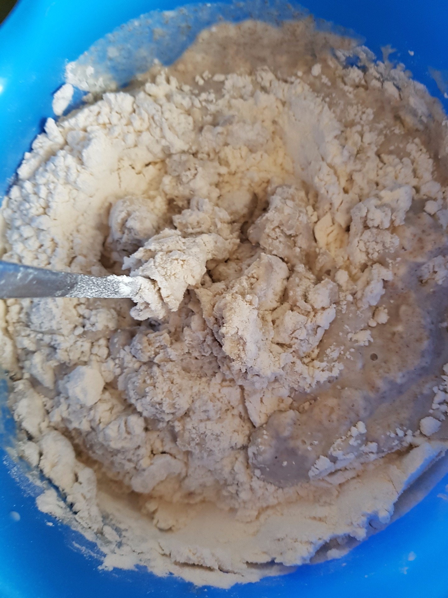 - Nach der Ruhephase kannst du die restlichen Zutaten hinzugeben und zu einer weichen Masse vermengen. Dazu benötigst du weder einen Knethaken, noch sonst eine Maschine.